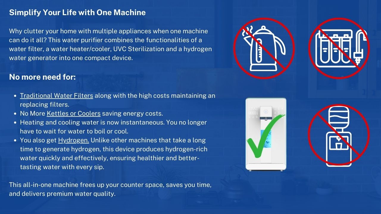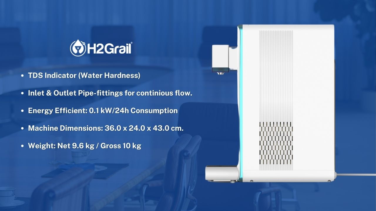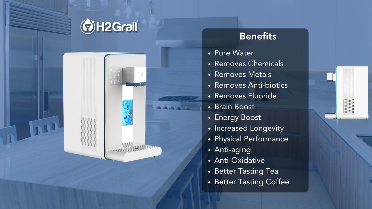 The H2Grail W19G Countertop combines a Hybrid of features: Cutting-edge 3x Stage RO filtration, advanced hydrogen generation and user-friendly functionality in a sleek, compact design. This machine is perfect for home, office, or any location.