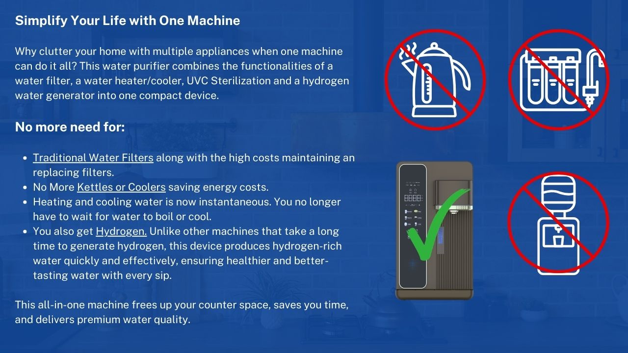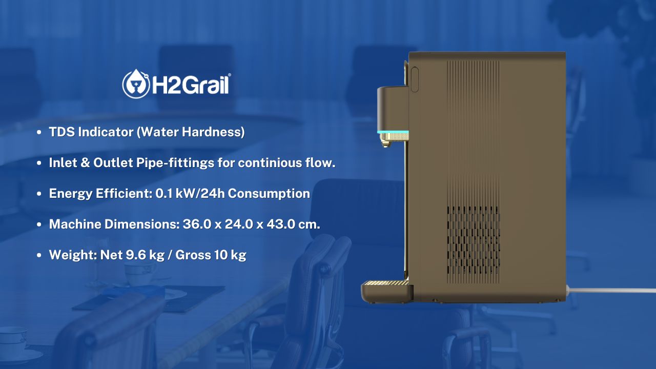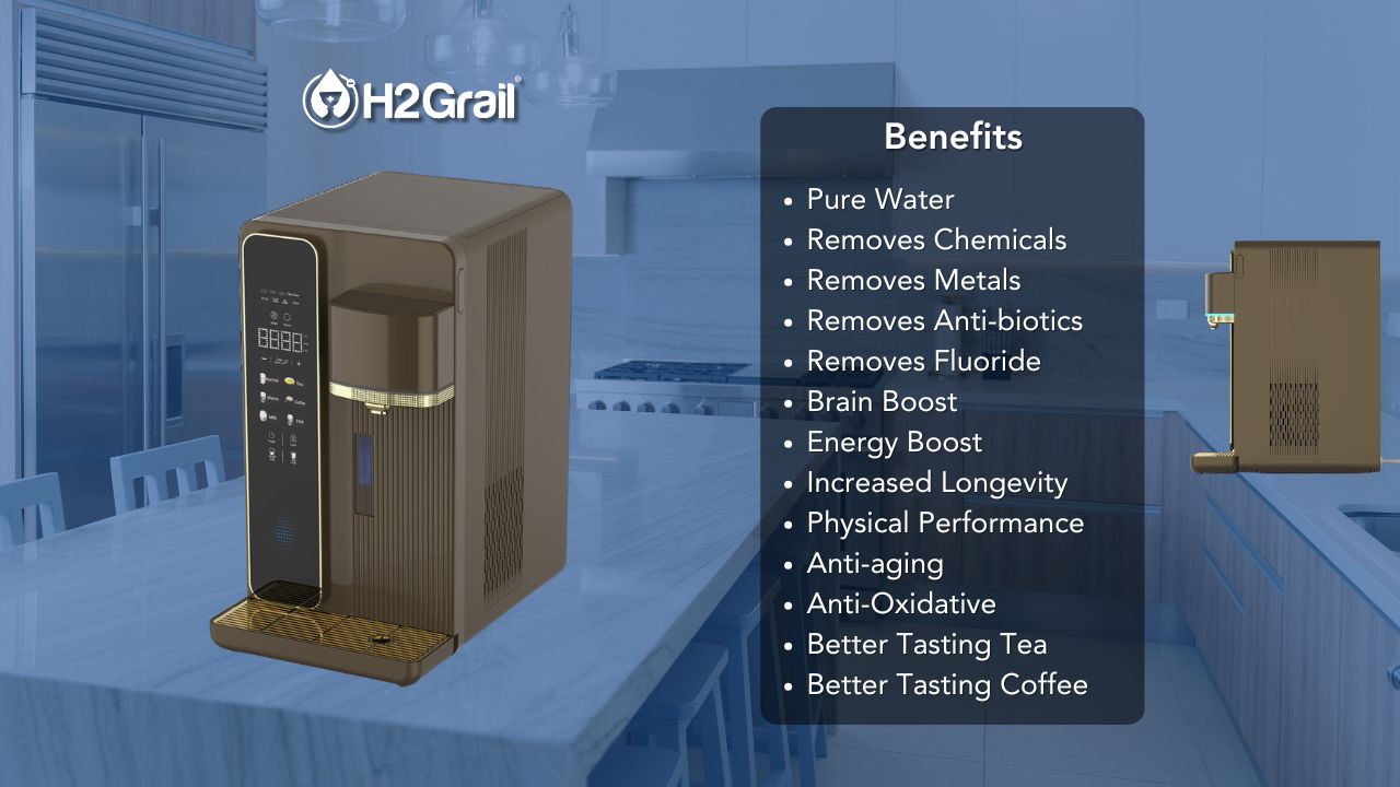 The H2Grail W19G Countertop combines a Hybrid of features: Cutting-edge 3x Stage RO filtration, advanced hydrogen generation and user-friendly functionality in a sleek, compact design. This machine is perfect for home, office, or any location.