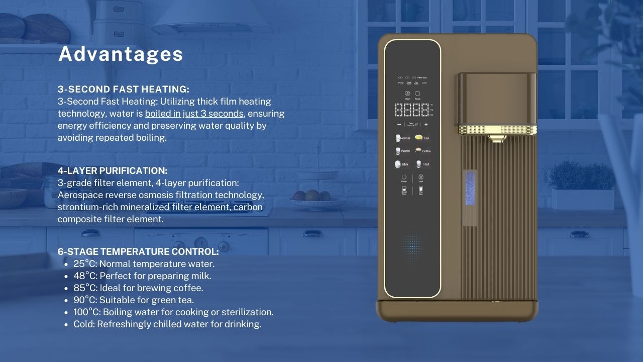 Choose from six precision temperature settings: 25°C, 48°C, 85°C, 90°C, and 100°C, ideal for everything from baby formula to herbal teas.