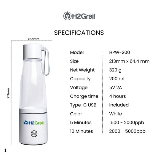 H2Grail Portable Hydrogen Water Bottle - 200ml